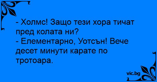 - Елементарно, Уотсън! Вече десет минути карате по тротоара.