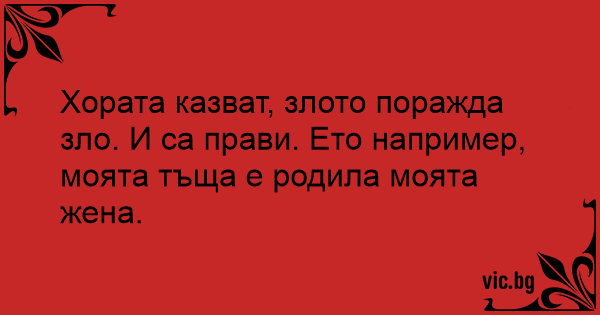 Хората казват, злото поражда зло. И са прави. Ето например, моята тъща е родила моята жена.