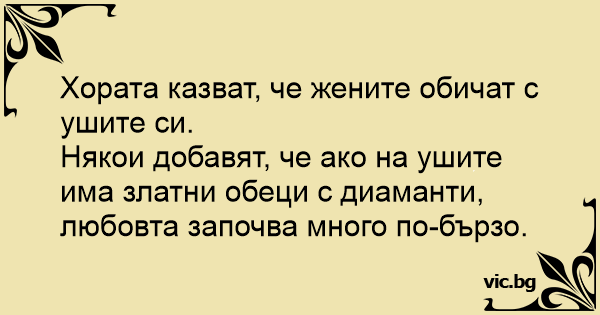 Някои добавят, че ако на ушите има златни обеци с диаманти, любовта започва много по-бързо.