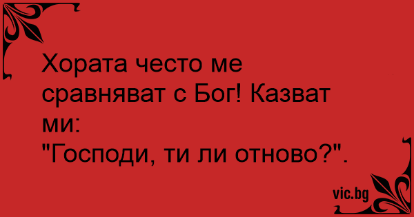 Хората често ме сравняват с Бог! Казват ми:
