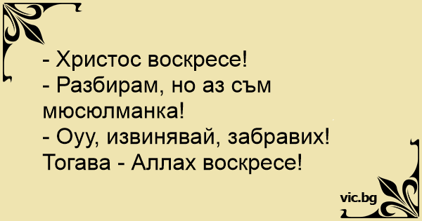 - Оуу, извинявай, забравих! Тогава - Аллах воскресе!