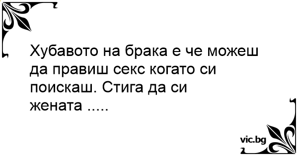 Хубавото на брака е че можеш да правиш cekc когато си поискаш. Стига да си жената .....