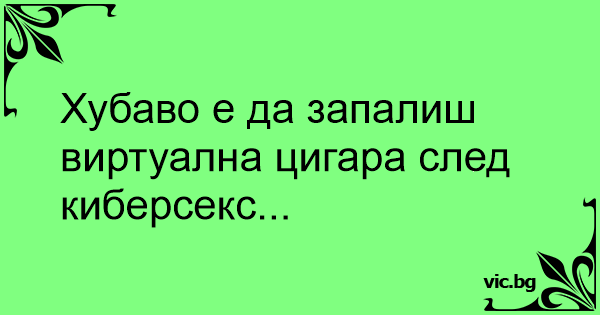 Хубаво е да запалиш виртуална цигара след киберсекс...