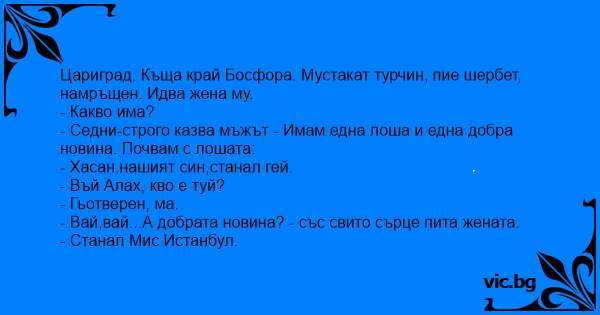 • Вицове от Facebook от нашата страница https://www.facebook.com/www.vic.bg