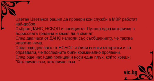 Събрал ДАНС, НСБОП и полицията. Пуснал една катеричка в Борисовата градина и казал да я хванат.