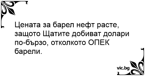 Цената за барел нефт расте, защото Щатите добиват долари по-бързо, отколкото ОПЕК барели.