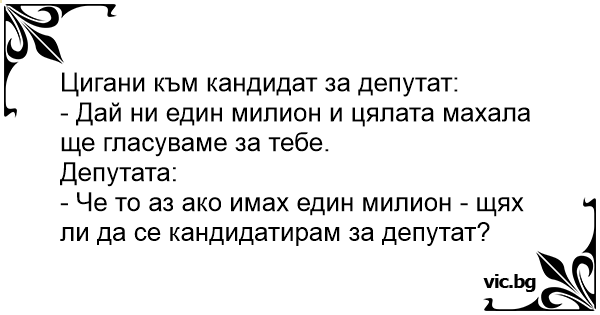 - Дай ни един милион и цялата махала ще гласуваме за тебе.