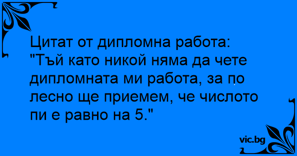 "Тъй като никой няма да чете дипломната ми работа, за по лесно ще приемем, че числото пи е равно на 5."