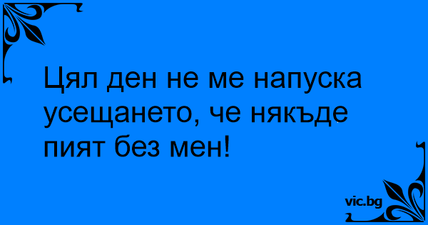 Цял ден не ме напуска усещането, че някъде пият без мен!
