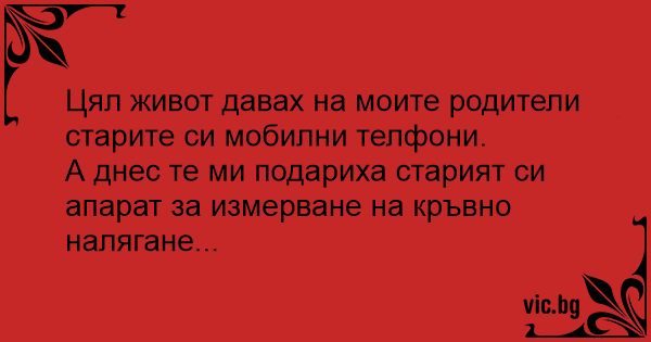 А днес те ми подариха старият си апарат за измерване на кръвно налягане...