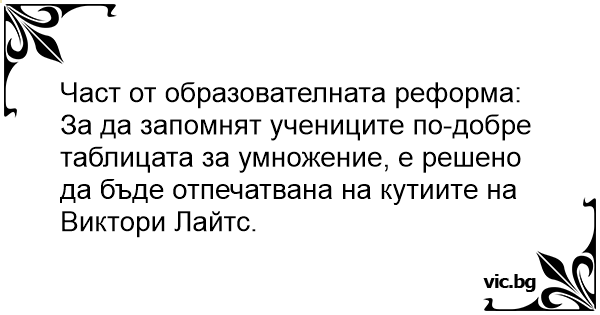 За да запомнят учениците по-добре таблицата за умножение, е решено да бъде отпечатвана на кутиите на Виктори Лайтс.