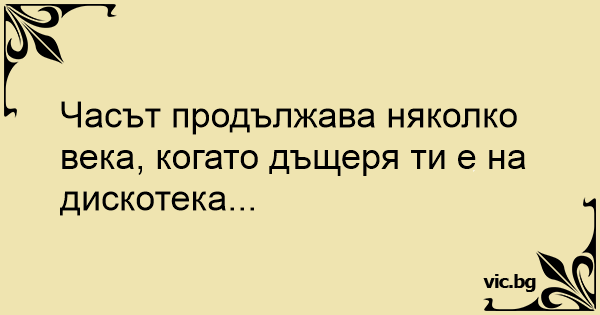 Часът продължава няколко века, когато дъщеря ти е на дискотека...