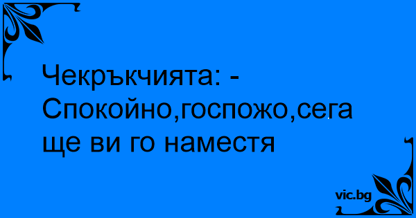 Чекръкчията: -Спокойно,госпожо,сега ще ви го наместя