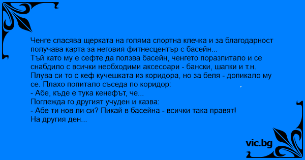 • Вицове от Facebook от нашата страница https://www.facebook.com/www.vic.bg