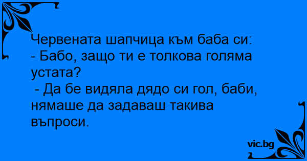 Червената шапчица пита баба си: - Бабо, защо ти е толкова голяма устата?