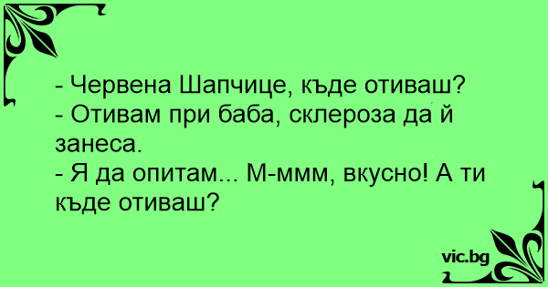 - Червена Шапчице, къде отиваш?