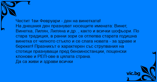 На днешния ден празнуват носещите имената: Винет, Винетка, Лилян, Лиляна и др. , както и всички шофьори. По стара традиция, в ранни зори се отлепва старата годишна винетка от челното стъкло и се слага новата - за здраве и берекет! Празникът е характерен със струпвания на стотици празнуващи пред бензиностанции, пощенски клонове и РЕП-ове в цялата страна.