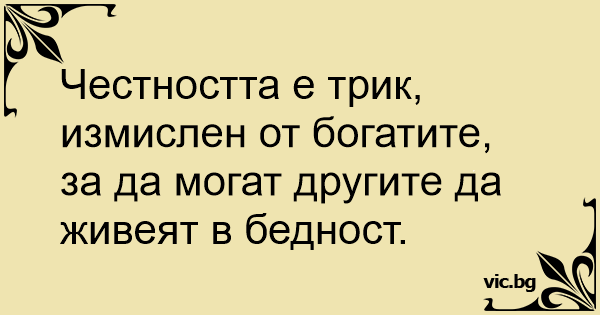 Честността е трик, измислен от богатите, за да могат другите да живеят в бедност.