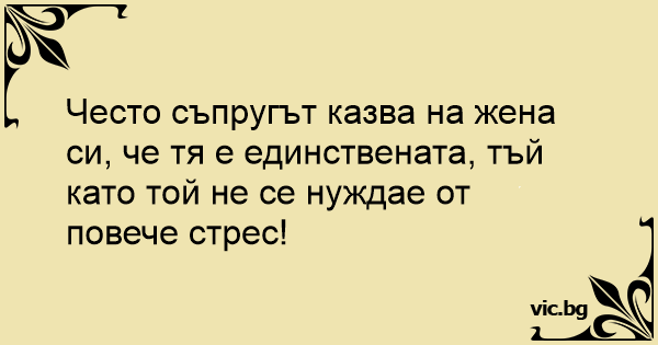 Често съпругът казва на жена си, че тя е единствената, тъй като той не се нуждае от повече стрес!