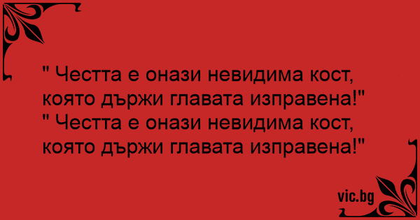 " Честта е онази невидима кост, която държи главата изправена!"