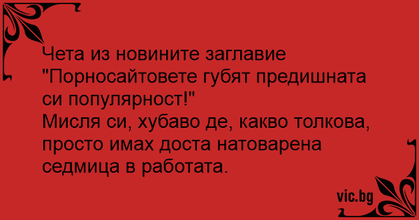 Чета из новините заглавие "Порносайтовете губят предишната си популярност!"
