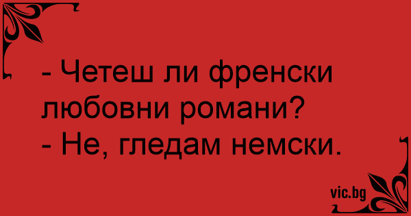 - Вы читаете французские любовные романы? - Нет. Я смотрю немецкие.