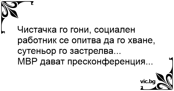 Чистачка го гони, социален работник се опитва да го хване, сутеньор го застрелва... МВР дават пресконференция...