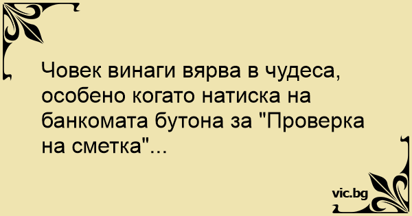 Човек винаги вярва в чудеса, особено когато натиска на банкомата бутона за "Проверка на сметка"...
