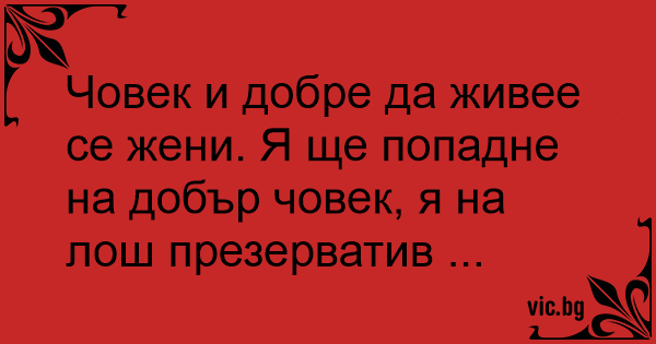 Човек и добре да живее се жени. Я ще попадне на добър човек, я на лош пpeзepbatиb ...