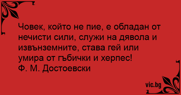 Човек, който не пие, е обладан от нечисти сили, служи на дявола и извънземните, става гей или умира от гъбички и херпес!