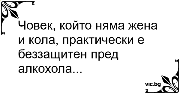 Човек, който няма жена и кола, практически е беззащитен пред алкохола...