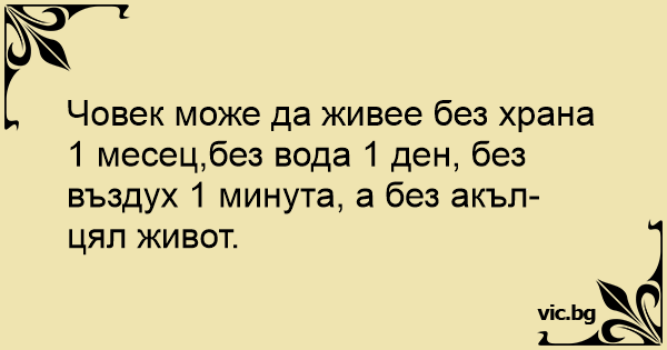 Човек може да живее без храна 1 месец,без вода 1 ден, без въздух 1 минута, а без акъл-цял живот.