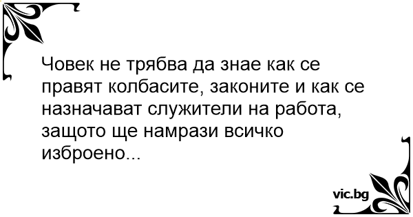 Човек не трябва да знае как се правят колбасите, законите и как се назначават служители на работа, защото ще намрази всичко изброено...