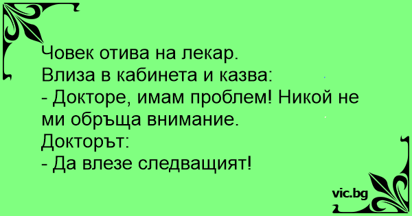 - Докторе, имам проблем! Никой не ми обръща внимание.