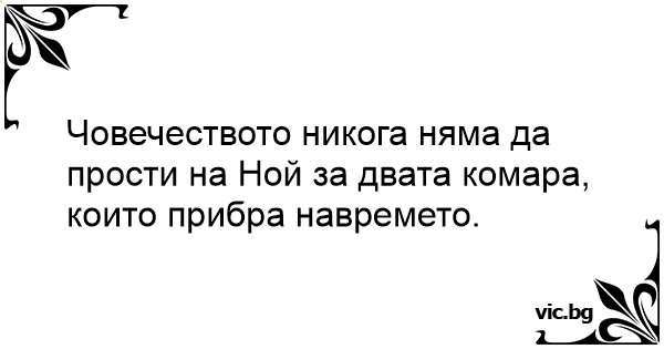 Човечеството никога няма да прости на Ной за двата комара, които прибра навремето.