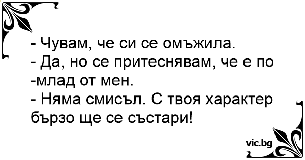 - Няма смисъл. С твоя характер бързо ще се състари!