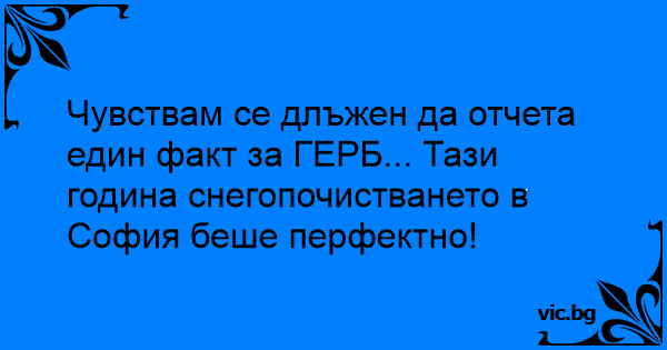 Чувствам се длъжен да отчета един факт за ГЕРБ... Тази година снегопочистването в София беше перфектно!