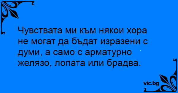 Чувствата ми към някои хора не могат да бъдат изразени с думи, а само с арматурно желязо, лопата или брадва.