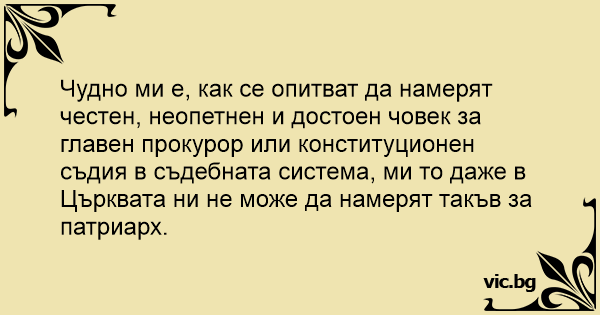Чудно ми е, как се опитват да намерят честен, неопетнен и достоен човек за главен прокурор или конституционен съдия в съдебната система, ми то даже в Църквата ни не може да намерят такъв за патриарх.