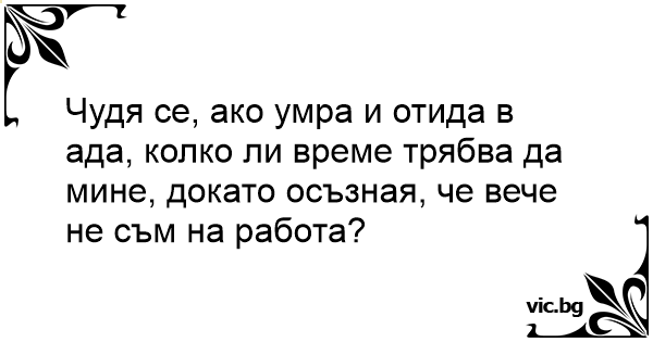 Чудя се, ако умра и отида в ада, колко ли време трябва да мине, докато осъзная, че вече не съм на работа?