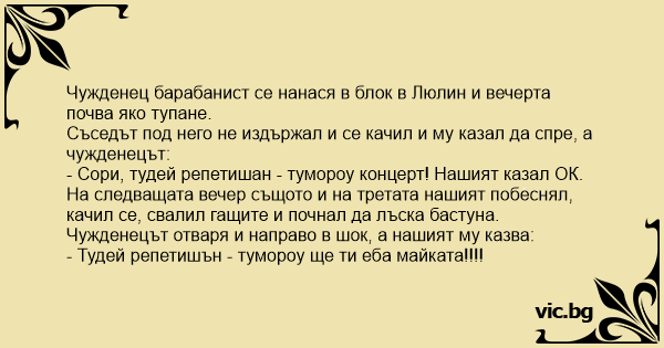 • Вицове от Facebook от нашата страница https://www.facebook.com/www.vic.bg