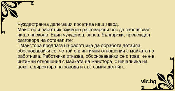 • Вицове от Facebook от нашата страница https://www.facebook.com/www.vic.bg