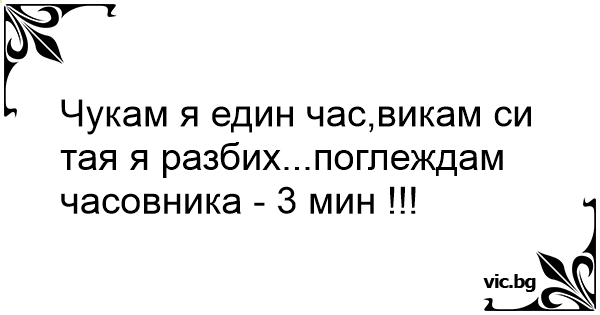 Чуkam я един час,викам си тая я разбих...поглеждам часовника - 3 мин !!!