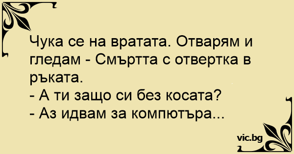 Чуka се на вратата. Отварям и гледам - Смъртта с отвертка в ръката.