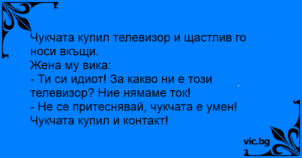 - Ти си идиot! За какво ни е този телевизор? Ние нямаме ток!