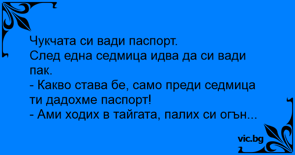 - Какво става бе, само преди седмица ти дадохме паспорт!