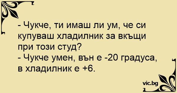 - Чукче умен, вън е -20 градуса, в хладилник е +6.