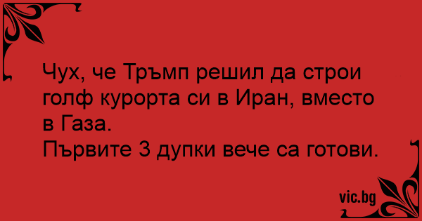 Чух, че Тръмп решил да строи голф курорта си в Иран, вместо в Газа.