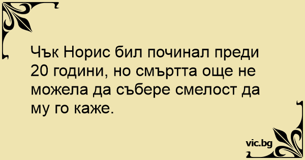 Чък Норис бил починал преди 20 години, но смъртта още не можела да събере смелост да му го каже.