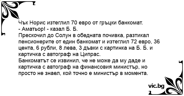 Чък Норис изтеглил 70 евро от гръцки банкомат.